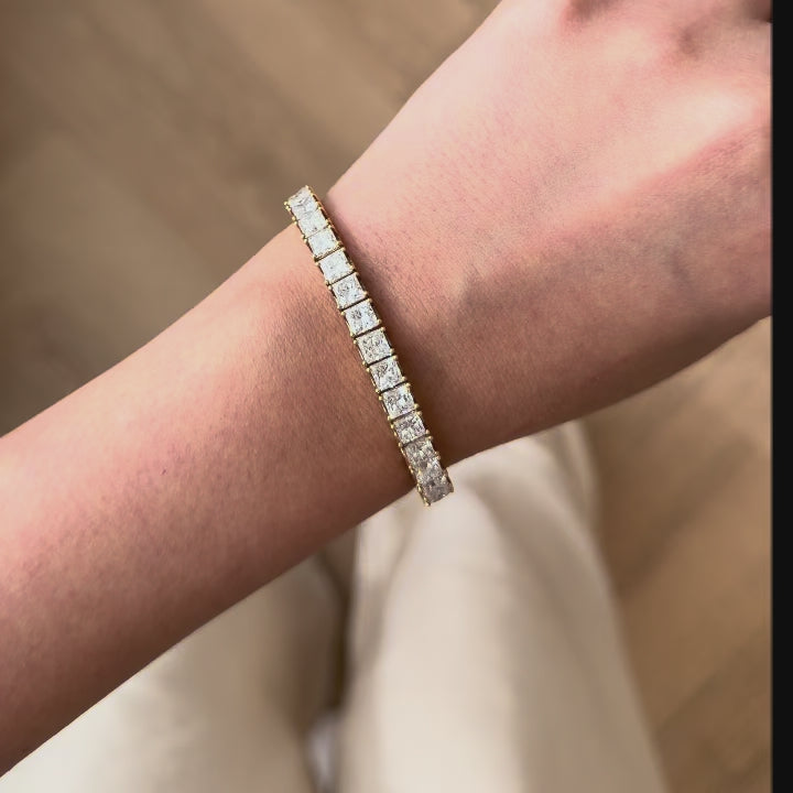18K Gold Tennis Bracelet Princess Cut Diamond -19 Carat